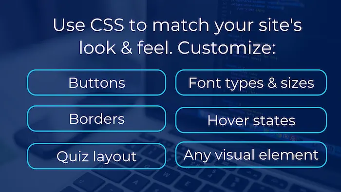 Sure, quizzes created with our online quiz maker using our standard layouts look good embedded on your site – but sometimes you want total creative control.